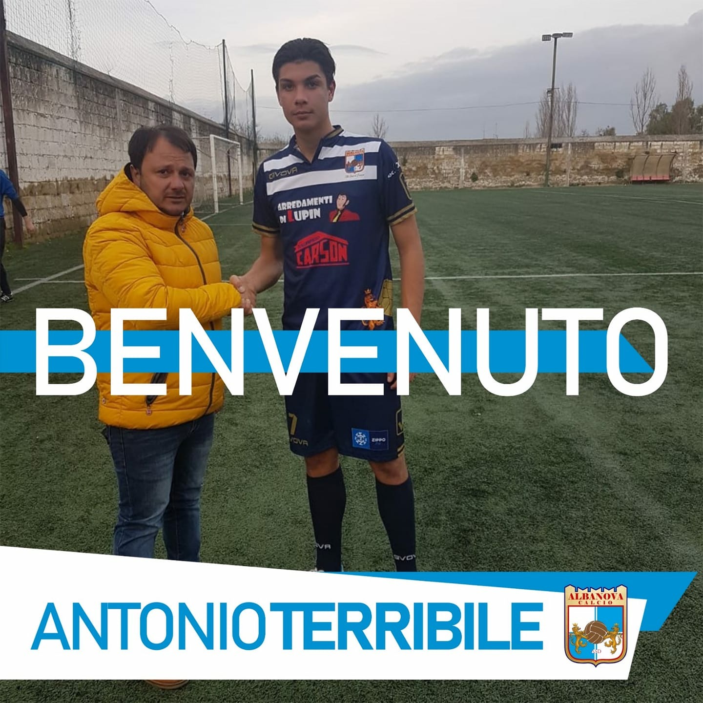 L’Albanova Calcio rende noto il tesseramento a titolo temporaneo dalla Casertana F.C. del calciatore Antonio Terribile. Difensore centrale classe 2001, Terribile nella passata stagione si era messo in luce con la maglia del Villa Literno, collezionando diverse presenze da titolare “sotto età” nel campionato di Promozione, tanto da guadagnarsi in estate il palcoscenico professionistico. Al ragazzo va il più sentito benvenuto in biancazzurro. La società ringrazia la Casertana per il buon esito della trattativa. UFFICIO STAMPA ALBANOVA CALCIO