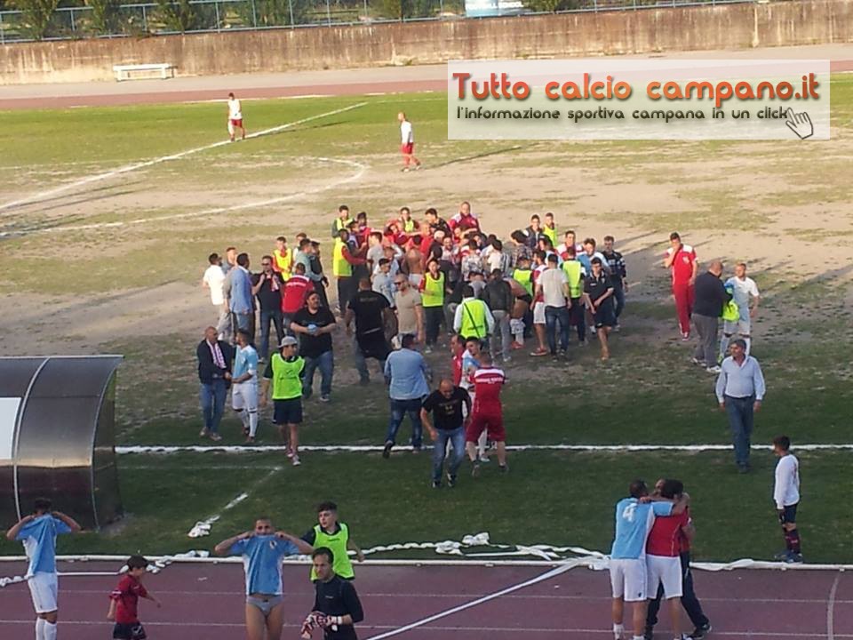 CERCOLA (NA) – È festa a Ponticelli. Il Campania saluta la Promozione e vola in Eccellenza. Lo fa grazie allo 0-0 casalingo con il Real Pontecagnano che gli permette l’accesso alla categoria superiore in virtù del miglior piazzamento nella regular season. Alla fine viene fuori il risultato più giusto da una parità che regala poche emozioni. La prima dopo 24 minuti. Esposito prova il tiro da fuori area, il rimbalzo ad un metodo dalla porta mette Dell’Isola in difficoltà, ma il numero uno ospite è bravo a mettere in angolo. Al 39′ è la volta degli ospiti, che arrivano alla conclusione con Albano, il cui tiro viene deviato ma Avino è attento e blocca a terra. Nella ripresa stesso copione. Parte bene stavolta il Real cgnano on Murolo, che si libera al limite dell’area ma in buona posizione spara alto. Al 66′ il neo entrato Signorelli lavora un bel pallone per Ascione che calcia a giro ma la palla termina fuori di poco. Al 72′ punizione di Esposito che termina alta. All’83’ ospiti vicini al gol con Volpe, abile nel tiro dalla distanza, ma altrettanto abile è Avino che gli nega la rete. Si va ai supplementari. Il primo tempo è avaro di emozione se non in partenza, quando Minauda si ritrova davanti al portiere seppur defilato. Bella la conclusione potente così come la risposta di Dell’Isola. Il Campania tiene senza faticare più tanto e va vicina al gol due volte con Signorelli prima al 116′ con un pallonetto che termina fuori, poi al 119′ quando la punta lanciata in velocità arriva al tiro dopo una serie di finte e regalando solo l’illusione del gol. A questo punto si attende solo il fischio finale che arriva dopo due minuti di recupero. Ponticelli fa festa, si respira la stessa aria dei tempi della Serie C degli anni settanta. Todisco come Morra Greco? Per i tifosi biancorossi la risposta oggi è sì.
