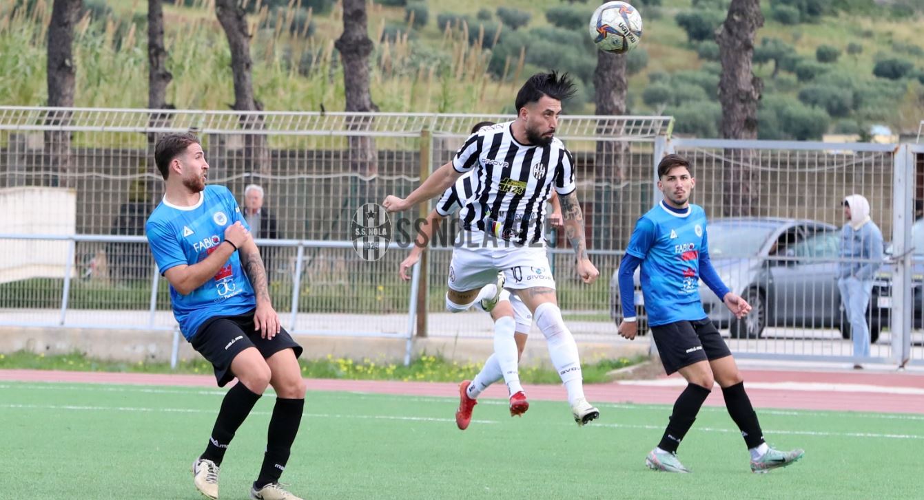Mister Farina rilancia il ristabilito Vitolo in difesa e ritrova Dentice disponibile per la panchina, ritrova posto Cacciatore a difesa e viene confermato Angarelli tra i pali ma resta ai box Caccavallo. Il Castel Volturno ha un inizio arrembante ma il Nola tiene il campo senza particolari problemi. Al 22′ occasionissima per il Nola: Melillo allarga per Dell’Orfanello che serve l’assist a Pozzebon sul secondo palo, il numero 9 nolano stoppa di petto e tira al volo ma la sfera va fuori. L’azione però è solo il preludio al vantaggio del Nola che arriva puntuale al 27′: palla sulla trequarti per Biason, il capitano nolano pennella un assist perfetto in area per Varsi che deve solo spingere di testa in rete. Il Nola va poi vicino al raddoppio al 36′ ancora con Pozzebon: disimpegno errato della difesa locale, l’attaccante nolano si avventa sulla palla in corsa verso il portiere Oliva ma la palla non va oltre l’opposizione dell’estremo difensore del Castel Volturno. Nella seconda frazione di gara il Castel Volturno parte forte e al minuto 53′ trova il pari con Avolio, abile a spingere in rete una palla vagante respinta dal palo. Al 64′ il contro sorpasso del Nola: palla filtrante per Mellilo, il centrocampista argentino si libera del suo avversario in bello stile e trafigge Senatore di sinistro. Al 71′ azione fotocopia del gol ma sul versante sinistro con Dell’Orfanello che serve ancora in area Melillo che tuttavia dopo il dribbling fa partire una conclusione troppo debole. Il Nola va poi ancora vicino al gol al 76′ con Filosa che si ritrova la palla della terza rete in area piccola ma Senatore è bravo a chiudere lo specchio in uscita. I bianconeri non la chiudono e subiscono il pari a 5′ dalla fine con Orefice abile a sfruttare un brutto disimpegno della retroguardia nolana. In pieno recupero il Nola ha l’occasione per vincerla con Dell’Orfanello ma Senatore neutralizza di piede il colpo di testa dell’esterno brasiliano. UFFICIO STAMPA NOLA