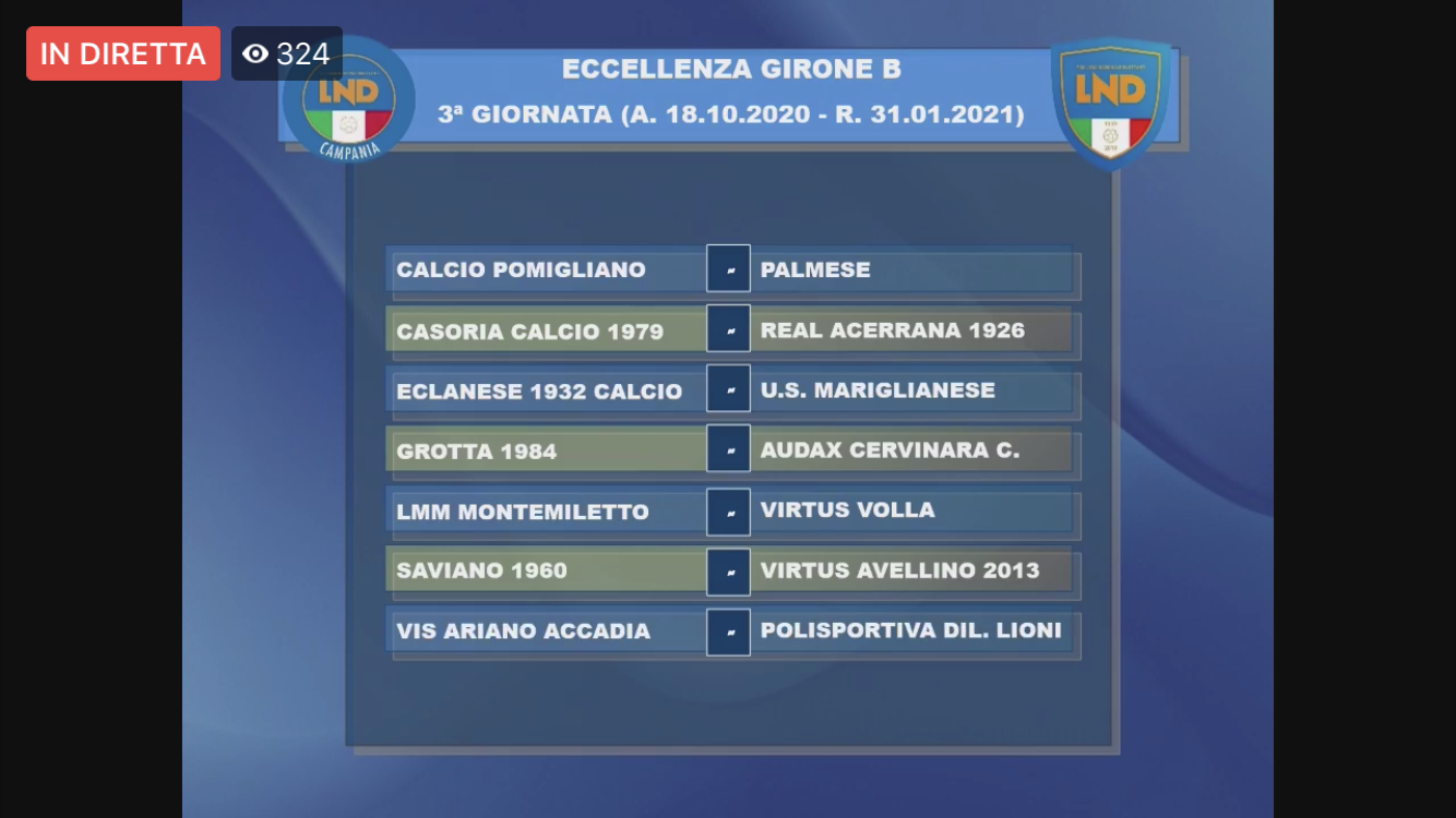 Di seguito i calendari completi dei tre gironi di Eccellenza 2020/2021