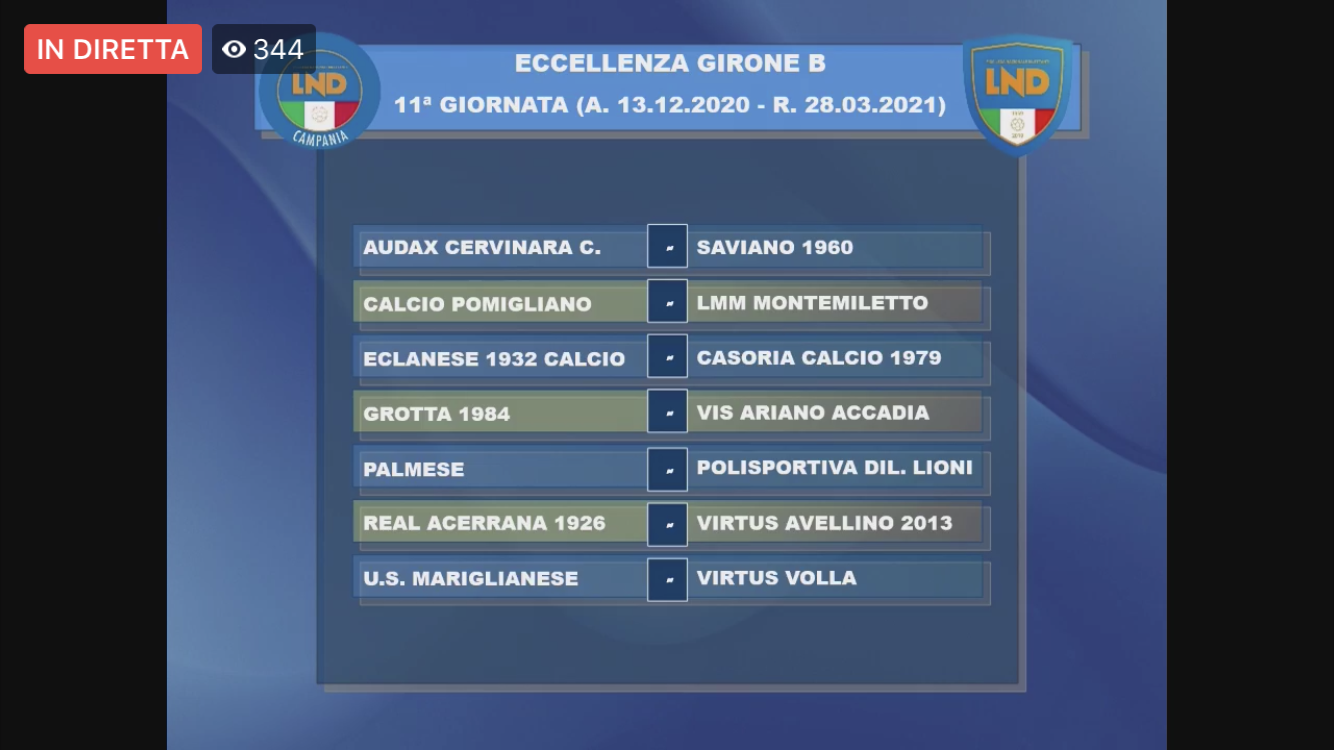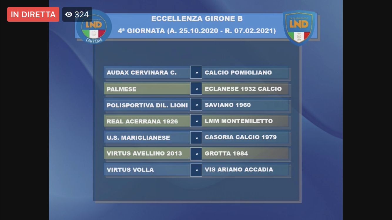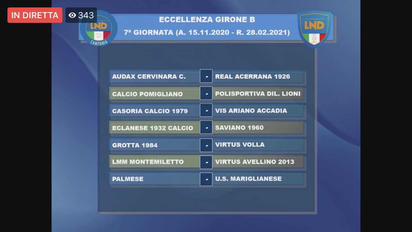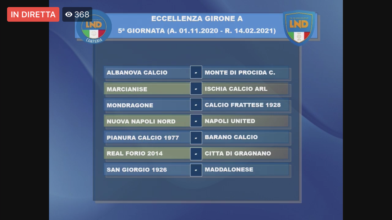Nelle grafiche, realizzate dalla LND Campania, sono utilizzate le denominazioni ufficiali dei club