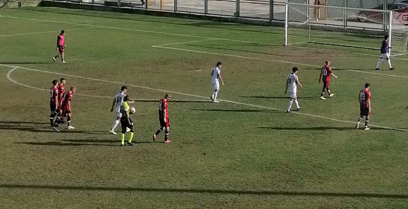 Non va meglio ai locali a Chianese che dai 25 metri spauracchia lontano dai pali rossoblù, lo imita Del Prete che al 36′ calcia centralmente senza creare problemi a D’Agostino. Al 40′ una palla vagante nell’area vallese vede un contrasto dubbio con l’arbitro che lascia però correre. Nel finale di frazione Chinnici lavora bene un pallone sulla sinistra ma Bonfini anticipa Ortolini di testa, Graziani calcia di poco sul fondo mentre Lombardi, numero uno dei locali, salva su Fornito su azione da corner mettendo con un guizzo nuovamente in angolo.
