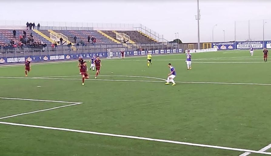 SECONDO TEMPO. Riprende il match al 6’ Geremy Emma conquista un pallone interessante e cerca il favore del gol con il suo tiro ma riesce a bloccare Maiellaro. Al 19’ il Casoria conquista una punizione dal limite centrale dell’area sulla battuta va Sannino che riesce a violare la porta difesa da Bellarosa e a siglare il gol dello 0-1. Risponde il Pomigliano al 22’ con Geremy Emma, ancora una volta, che spinge in avanti ma riesce a chiudere tutto in qualche modo la difesa ospite. Al 30’ punizione di Foti respinge in corner Maiellaro. Ma al 33’ raddoppia il Casoria con Cirelli. Più tardi al 37’ punizione di Sannino dal limite dell’area Bellarosa in volo scongiura il pericolo e si rifugia in corner. Al 42’ punizione per il Pomigliano dal limite dell’area sulla battuta va Emma e il pallone va alto. Dopo 3’minuti di recupero la gara termina con il risultato finale di 0-2.