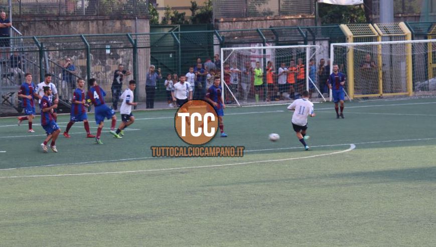 Il festival dei gol falliti è andato in scena con 15 minuti di ritardo per problemi di compilazione della distinta da parte della squadra flegrea. Infatti, dopo una lunga attesa, il dirigente addetto alla compilazione del documento da presentare all’arbitro, ha inserito solo 15 giocatori dei 18 previsti dal regolamento. Lo spettacolo, si fa per dire, è andato in scena sul palcoscenico del Paudice con numerosi errori-orrori di conclusione da parte dei giocatori di mister Sarnataro. Come è iniziato così è proseguito per tutto l’arco degli oltre 90 minuti fino all’ultimo giro di orologio del recupero recupero accordato dal mediocre Colaninno di Nola. Con il rocambolesco pareggio portato via da via Sandriana dai ragazzi di Longobardi, per la prima volta una squadra di Promozione si qualifica al turno successivo di Coppa Italia a spese del San Giorgio dove se la vedranno con il forte Savoia, una delle candidate alla vittoria finale del girone A di Eccellenza. Dal 33’del primo tempo, la squadra di casa rimane in 10 per l’espulsione di capitan Aliperta e le cose si complicano maggiormente. Infatti, passano due minuti e la squadra venuta dalla solfatara passa in vantaggio con Manzo, il migliore in senso assoluto dei suoi e non solo. Punizione dal vertice destro dell’area di D’Auria, il portierino classe ’99 che debutta al posto di Pepe Capece assente per motivi di lavoro. Sulla palla il numero 10 di Longobardi che aggira magistralmente la barriera e depone la sfera nell’angolino alto alla destra del portiere. Al 39’ il San Giorgio perviene al pareggio: cross di Napolitano al centro dell’area, De Biase sfiora la palla di testa, riprende Signorelli e mette in rete. Ristabilita la parità sembra che il peggio sia passato e dopo il riposo le squadre si ripresentano in campo con il San Giorgio più motivato. Almeno così sembra. Al 12’ bella giocata in acrobazia di Signorelli dalla breve distanza, l’esperto Compagnone respinge istintivamente a pugni uniti, riprende D’Andrea e mette al lato. Al 24’ gran botta di D’Andrea che ha sostituito De Biase ad inizio di ripresa; il fendente dalla brevissima distanza è miracolosamente respinto ancora a pugni in angolo da Compagnone. Al 36’ il San Giorgio passa in vantaggio e l’obiettivo qualificazione sembra conquistato. Invece il peggio doveva ancore arrivare. Triangolazione Perna (arrivato dalla panchina al posto di Noviello) – Signorelli e bordata del numero 13 che mette la palla all’incrocio dei pali. Quando si intravedeva all’orizzonte il doppio match con Savoia per il turno successivo, al 44’ l’arbitro accorda alla Puteolana una punizione dalla trequarti; sulla palla lo specialista Manzo che centra la traversa di D’Auria; sulla palla si avventa Passero e mette in fondo al sacco. Il destino del San Giorgio sembra definitivamente segnato. E invece, la dea bendata dà alla squadra di Sarnataro ancona una possibilità per guadagnare la qualificazione al turno successivo. Nel secondo minuto di recupero ancora un’occasionissima si presenta per i granata, oggi in maglia bianca; Signorelli, appostato davanti alla porta, sfiora appena la sfera che passa di un non nulla dal palo e termina sul fondo. Al triplice fischio finale esultanza per i flegrei e sconforto con grosso rammarico per i ragazzi del Presidente Fico. Giacomo Di Sarno