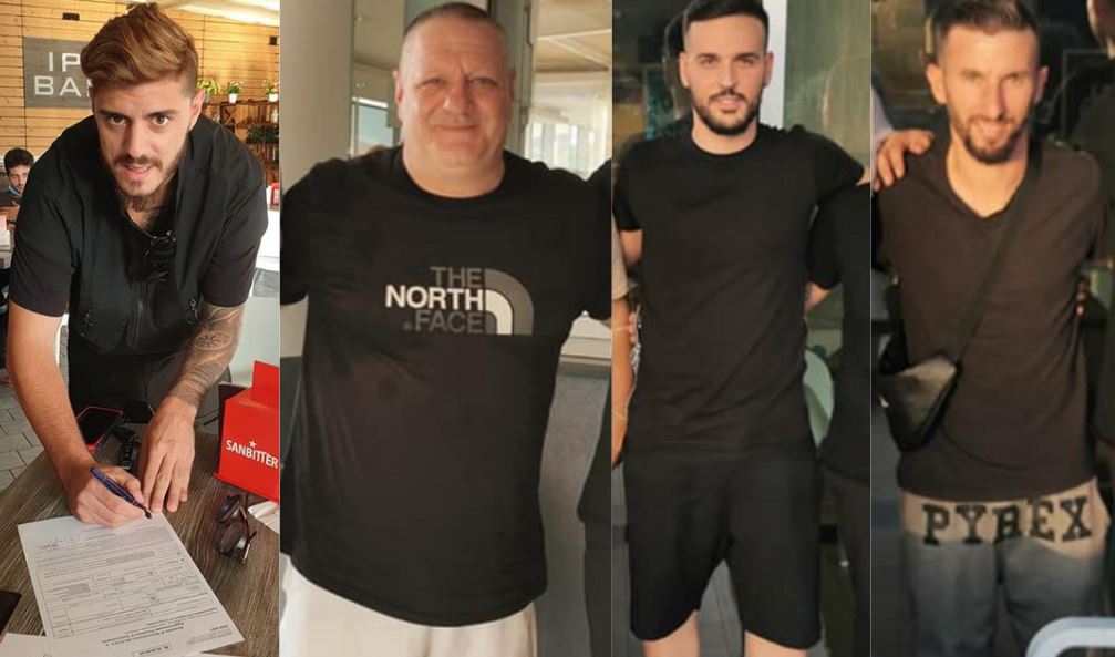 nella foto il tecnico Gargiulo e tre degli otto innesti: Barone, Maggino e Manco.